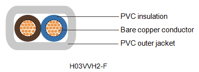 These cable types are especially suited for use on small appliances with low mechanical stress and for connection for light household appliances, e.g. kitchen utensils, desk lamps, floor lamps, vacuum cleaners, office machines, radios, etc. As far as these cables are admitted to the relevant specifications of the equipment, They are not permitted for use with cooking or heating apparatus. Cables with cross section 0.75 mm² are not suitable for outdoor use or use of industrial or farmer machineries. Max operating voltage in single or three phase system is Uo/U 330/330 volts. In a direct current system max operating voltage is Uo/U 495/495 volts.