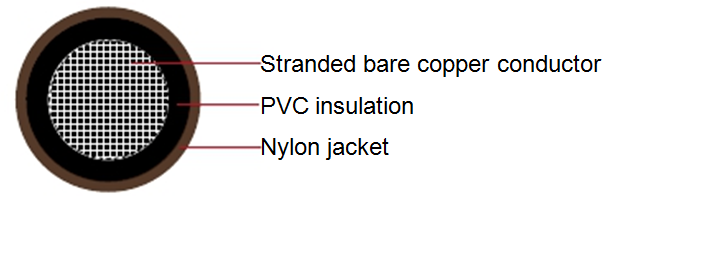 Insulation: Tough, heat and moisture resistant Polyvinyl chloride (PVC) insulation over which a nylon (polyamide) jacket is applied.