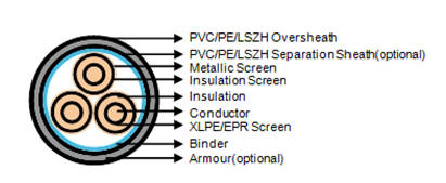 CONSTRUCTION OF MV 50MM 3 CORE POWER CABLE IEC STANDARD