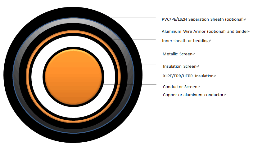 The single core power cable are designed for distribution of electrical power with nominal voltage Uo/U ranging from 3.8/6.6KV to 19/33KV and